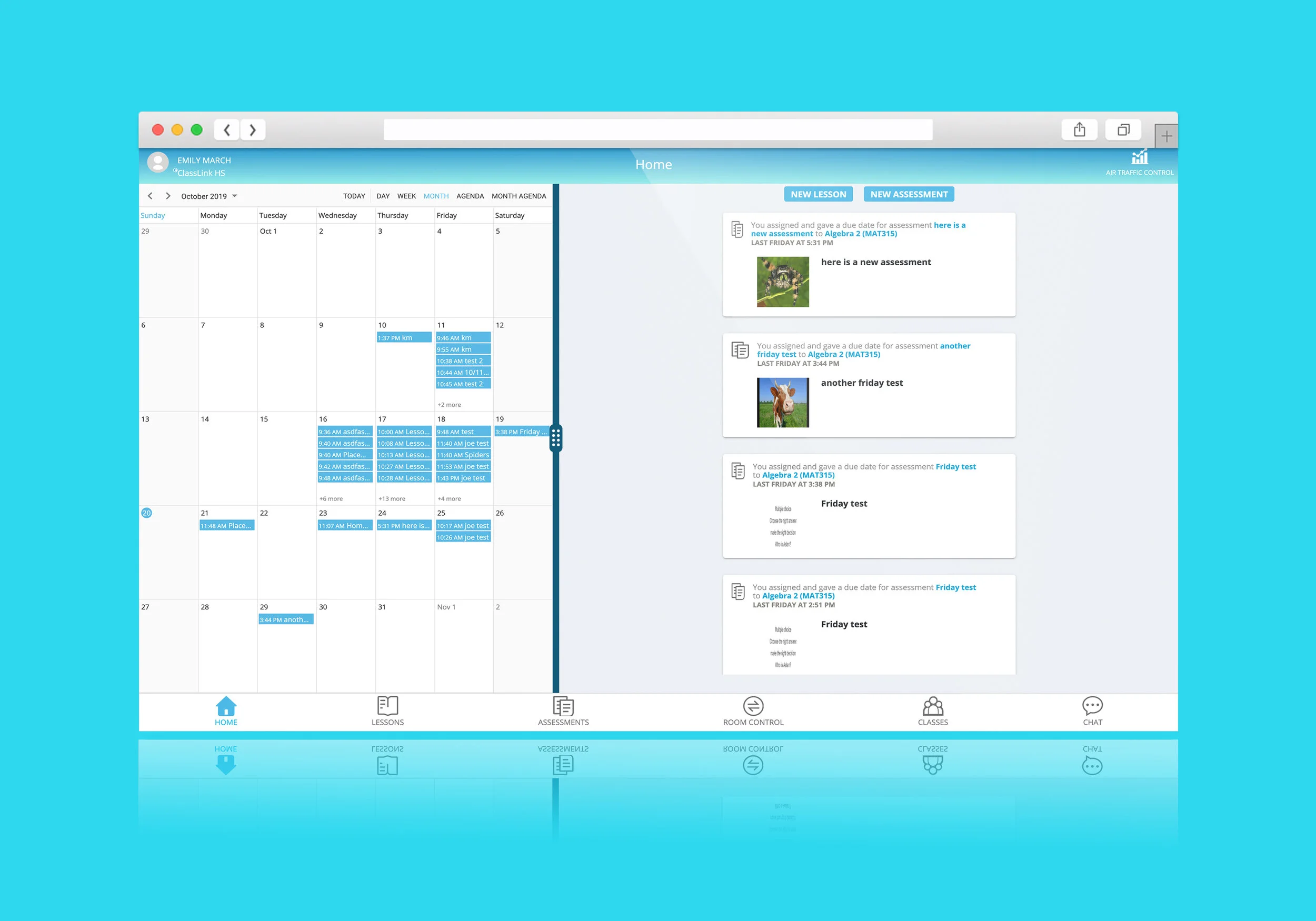 The original design for the home page included a large calendar and an endless updates feed. This interface could be difficult for some teachers to use because the calendar could end up being overcrowded with events and the endless scrolling for the updates feed could be frustrating.